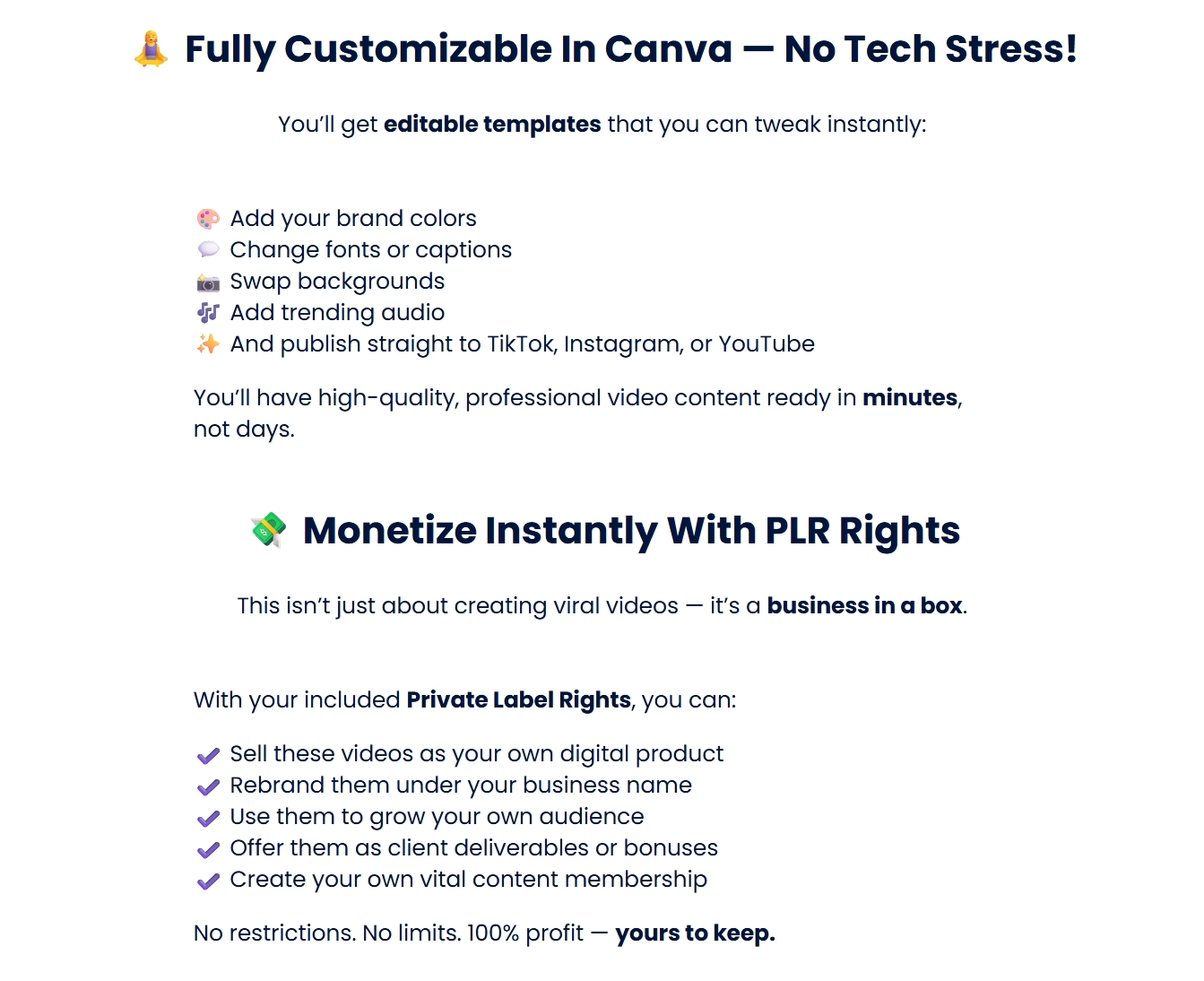🎯 Step-by-step Instructions to Edit: You don’t need prior experience using Canva or editing videos. It includes a step-by-step guide so you can get the hang of it, even if you’re a total beginner.