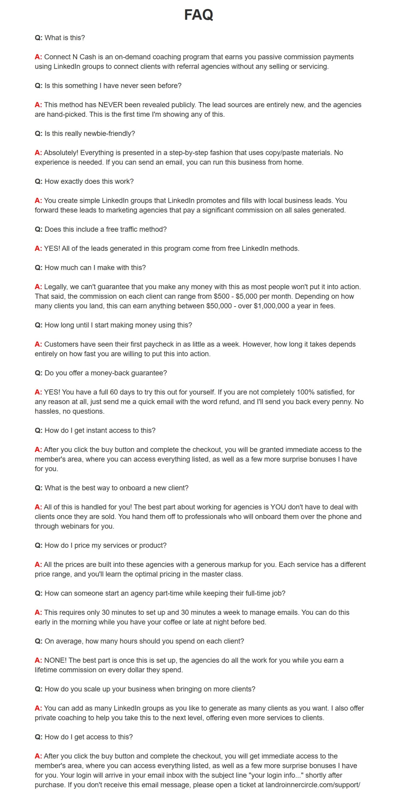 ❌ Honestly, I have nothing but positive words to say about Connect N Cash. Luther Landro is clearly an expert in this field, and I can confidently say that you can’t go wrong with this program!