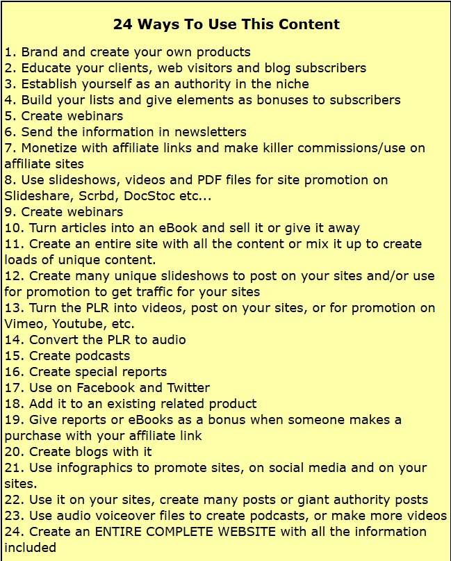 Using this PLR pack the right way is how you will win, not simply publishing everything as is.