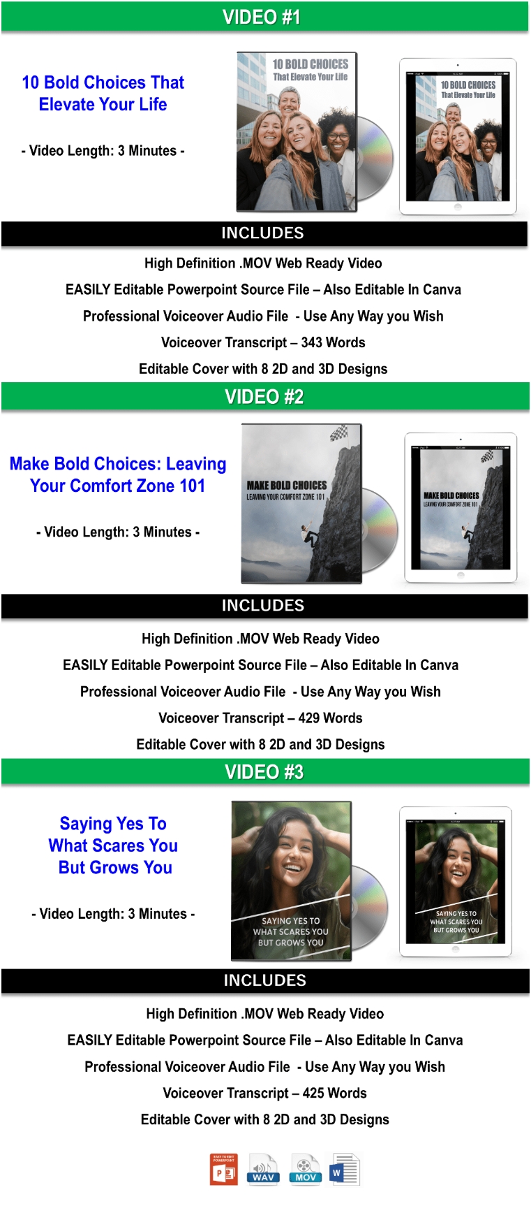 🎯 Video Content: Three professionally produced videos with voiceovers, scripts, and editable source files. You can rebrand these completely or use the scripts for your own videos.